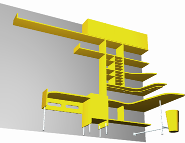 Møbel for et hjemmekontor i 10ᵉ arrondissement av Paris. Brukeren er en firmarepresentant som ofte reiser. Møbelet akkomoderer brukerens mobile kontorutstyr. Prosjektets mål er å danne åpenhet og bevegelse i rommet, og å holde gulvoverflaten brukbar. Formen av skapene er tilpasset for godt innfall av dagslys på arbeidsbordet, ergonomi, optimal romutnytting og ståhøyde. Materialer: oljet MDF og rustfritt, matt stål.